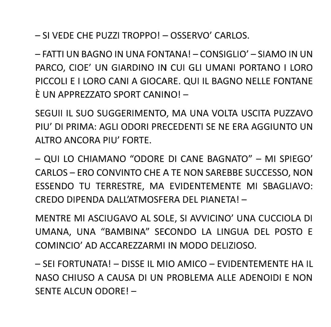 Confesso che mi piacerebbe che la diffusione forse più ampia, quindi, vi invito a leggere questo libro di avventure canine, sperando che a qualcuno di voi piaccia e che esista, tra l'esigua categoria di miei estimatori, una sottocategoria di persone che possano segnalarlo ad una casa editrice.